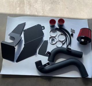 Kit de admisión de aire para Golf 5 GTI y Golf 6 GTI. Incluye todos los componentes necesarios para su instalación. - Filtro de aire cónico rojo. - Tubos de admisión de aluminio negro. - Abrazaderas y codos de silicona.
