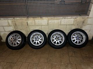 Juego de 4 llantas de aleación para BMW. Son 7” de ancho, tienen neumaticos Michelin algo viejos pero a media vida aun - Diámetro de 15 pulgadas. - Patrón de pernos 5x120. No leer: bmw, drift, llantas, barato, e36, e46, e90
