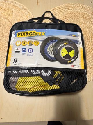 Fundas textiles para la nieve de la marca FIX&GOTEX. Son una alternativa a las cadenas tradicionales para mejorar la tracción en superficies deslizantes. - Certificación TÜV. - Compatibles con ABS y ESP. - Incluye bolsa de transporte. -están sin usar y en la ultima esta las medidas para los neumáticos que sirve . Son la talla F por si queréis buscar.