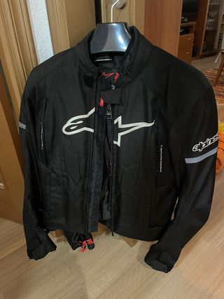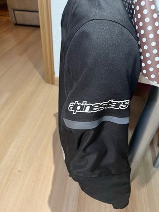 Chaqueta de moto de la marca Alpinestars en color negro. - Diseño deportivo. - Cierre frontal con cremallera. - Logos de la marca visibles. - Talla s. - utilizada solo en las prácticas y el examen