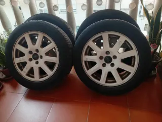 Llanta R16 con neumático Michelin Primacy 4 y Continental (dos y dos) Estaban montadas en un Ford Mondeo mk3 - Llanta de 9 radios en color blanco. - Neumáticos usados al 80% los Michelin y los continental uno está pinchado y el otro tiene 1 año de uso - Medida del neumático: 205/55 R16 91V.