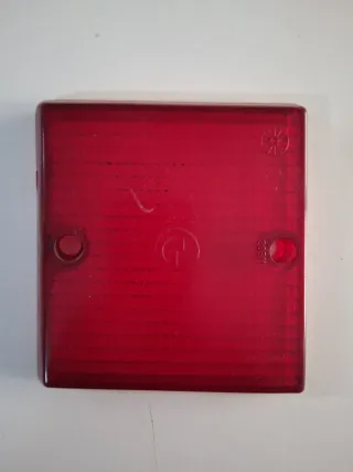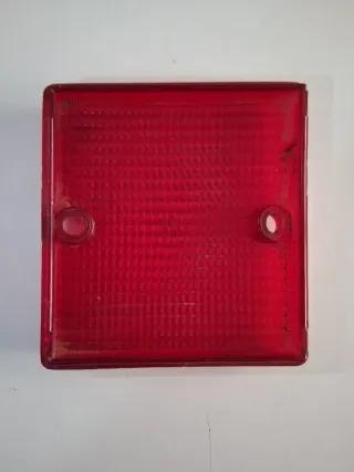 Tapa de carcasa para piloto trasero de forma cuadrada. Desconozco de que vehículo es - Color rojo. - Diseño con líneas horizontales. - Dos orificios para sujeción.