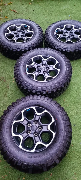 Juego de 4 llantas y neumáticos para Jeep Rubicon Híbrido. - Diseño deportivo y robusto. - Neumáticos todoterreno con buen agarre.
