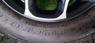Juego de ruedas para Jeep Wrangler Sahara. _255 70 18 - Llantas de aleación con acabado bitono. - Neumáticos Bridgestone. - Logo de Jeep en el centro.