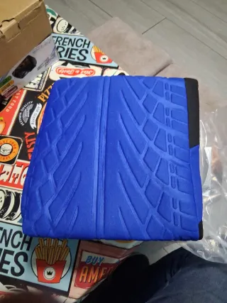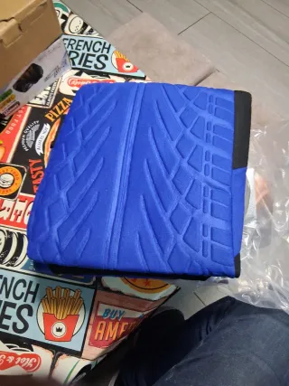 Protege los asientos de tu coche con estas fundas de diseño original 9 piezas delanteros traseros y reposacabezas. Coche furgoneta camper etc - Color azul vibrante. - Textura inspirada en neumáticos. - Borde negro.