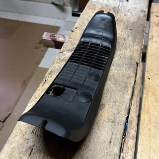 Tapa de plástico negro para el carburador de una Derbi Variant. - Diseño con rejilla. - Dos puntos de anclaje circulares.