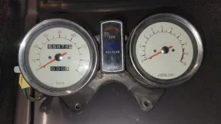 Conjunto de tacómetro y velocímetro para Yamaha SR 125cc. - Tacómetro con escala hasta 10x1000r/min. - Velocímetro con escala hasta 160 km/h. - Indicadores de giro, luz de carretera y punto muerto.