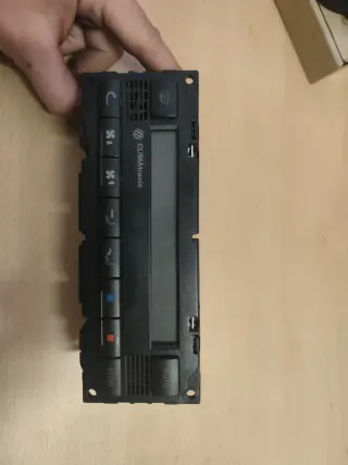 Panel de control Climatronic para vehículos del grupo Volkswagen. Estaba montado en un Volkswagen Passat b5 Pero también lo monta el Bora, el golf y alguno mas - Diseño en color negro. - Pantalla digital central. - Botones con iconos. - Rejillas de ventilación integradas.