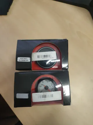 Dos relojes de presión para turbo, medidores de presión y vacío. - Uno de ellos es para Turbo/Bar. - El otro es para Boost (presión y vacío). - Ambos son de la marca SKU864170. Con todo lo necesario para si instalación Usados muy poco El de la esfera blanca tiene iluminación azul Y el oscuro diversos colores a elegir mediante un boton. 15eur cada uno