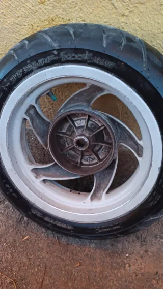 Llanta trasera de piaggio fly, año 2007,neumatico con poca vida aunque se puede aprovechar y algún desperfecto de pintura pero no tiene golpes