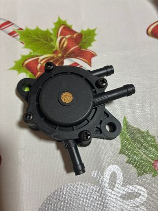 Bomba de combustible universal con filtro integrado. - Conexiones para mangueras. - Diseño compacto y ligero. - Material: Plástico y metal.