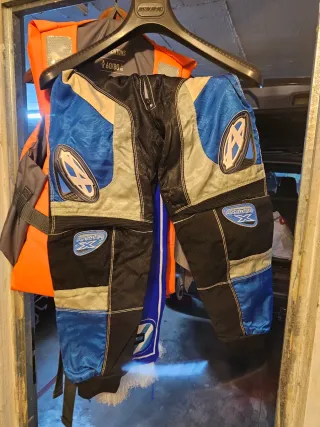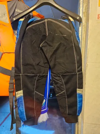 Pantalón de moto para niño de la marca Answer. Aprovechable todavía...Mucho tiempo guardado... - Diseño en color azul, negro y gris. - Detalle de logo en los laterales. - Cierre con cremallera.