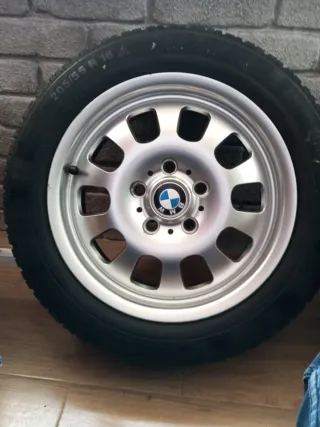 4 llantas BMW con neumáticos. - Medida del neumático: 205/55 R 16. - Diseño deportivo con logo BMW en el centro como nuevo todo