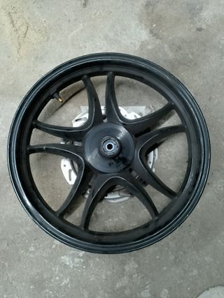 Llanta delantera Sym Symphony 125, con muy poco uso, tal como se ve en las fotos, con disco y todo. Llanta de aleación negra para motocicleta. Diseño deportivo con 5 radios. - Color: Negro - Material: Aleación - Diseño: 5 radios