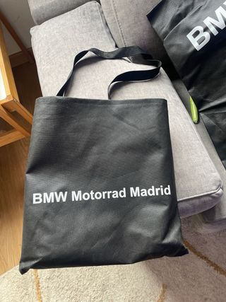 Funda protectora para moto de la marca BMW. - Diseño en color negro. - Logotipo de BMW Motorrad Madrid.