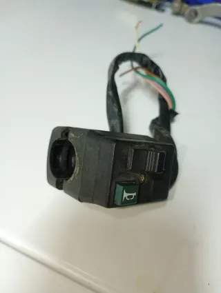 Mando de manillar para control de claxon e intermitentes. - Carcasa de plástico negro. - Botón verde con símbolo de claxon. - Cableado con varios colores.