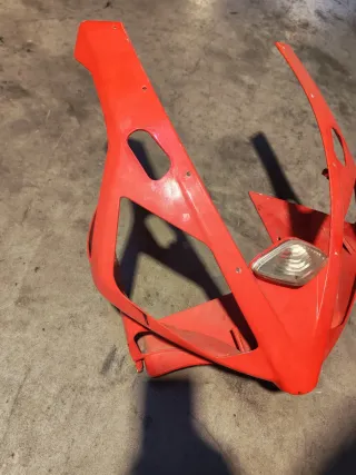 Carenado delantero y colín sin portamatroculas ni intermitentes de moto en color rojo. No se incluyen faros ni pilotos. - Diseño deportivo. - Pieza de plástico resistente.