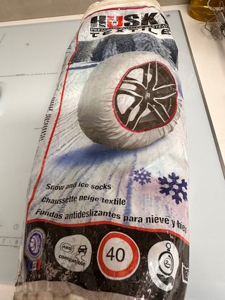 Fundas textiles para nieve y hielo HUSK. Es la L mira en la foto para que medidas de neumatico - Compatibles con ABS. - Velocidad máxima recomendada: 40 km/h. - Incluye bolsa de transporte.