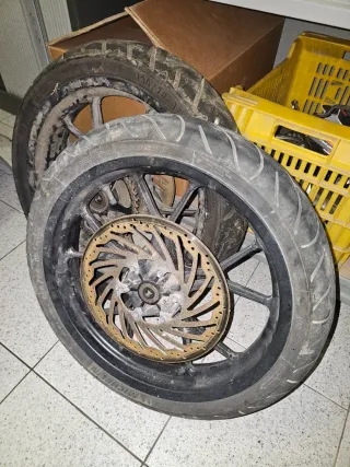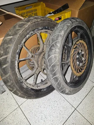 Las vendo económicas pues la pintura de la trasera esta para repasar. Los discos estan ok. Creo que son compatibles con rieju rs2 125 y aprilia rs125. Cada una en 50€, las dos en 90. No negocio.
