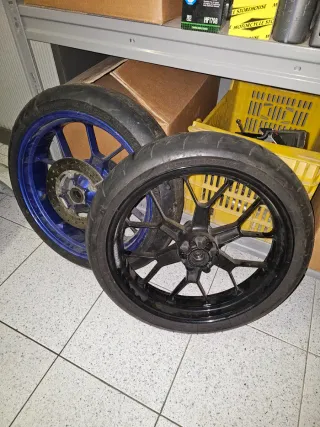Juego de llantas para Aprilia RS 125, modelos de 2006 a 2010. Se venden ambas llantas. - Llanta tras azul, con un slick gastado - Llanta del negra muy bien de pintura. Regalo disco de freno. 60 cada una. Ambas 100