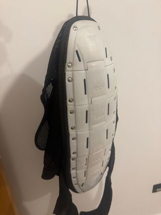 Espaldera protectora para motocross, marca Ixs. - Diseño ergonómico y flexible. - Material exterior de malla transpirable. - Placas protectoras de plástico blanco.