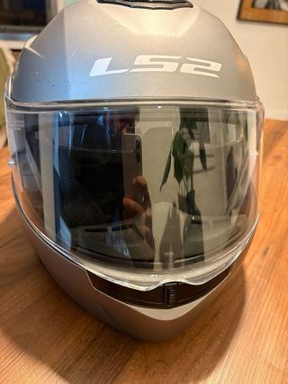 Casco de moto de la marca LS2 en color gris. Diseño moderno y seguro. - Visera transparente. - Interior acolchado. Talla M.. como Nuevo