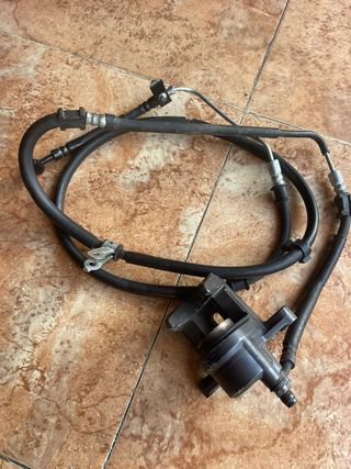 Conjunto de freno trasero para Yamaha TMAX 530. Incluye latiguillos y pinza. - Latiguillos de freno. - Pinza de freno.