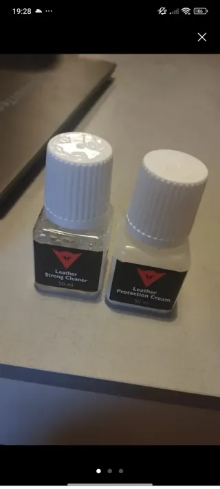 Kit de cuidado para cuero de la marca Dainese. - Incluye Leather Strong Cleaner (50 ml). - Incluye Leather Protection Cream (50 ml). - Envase transparente con tapa blanca.