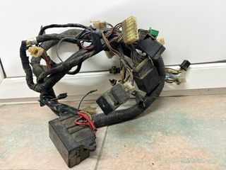 Sistema eléctrico completo para Yamaha FZR 1000 EXUP de los años 1991 a 1993. - Incluye mazo de cables principal. - Conectores y fusibles visibles. - Caja fusibles y todos los relés. - No incluye conexiones de óptica delantera y piloto.