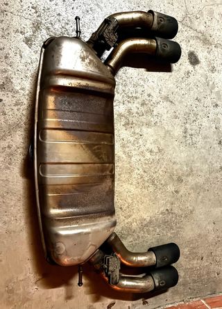Tramo final de escape original de Cupra Formentor VZ (2022). Incluye las cuatro salidas dobles originales, tal como se ve en las fotos. ✔ Estado muy bueno, sin golpes ni deformaciones ✔ Pieza original de Cupra ✔ Ideal para reposición, modificación o proyecto ✔ Sonido y estética deportiva con las 4 salidas características del VZ Se desmontó del coche al cambiar a otro sistema de escape.