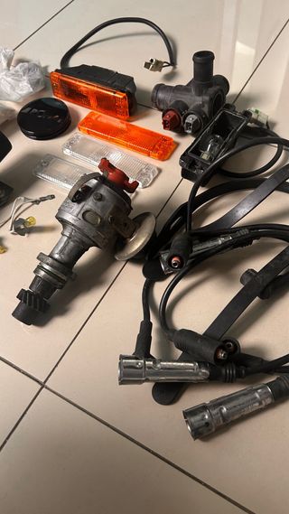 Conjunto de repuestos para Volkswagen Golf MK2. - Pilotos naranjas y transparentes. - Bobina de encendido. - Distribuidor. - Tapa Ronal. - Cables de bujía