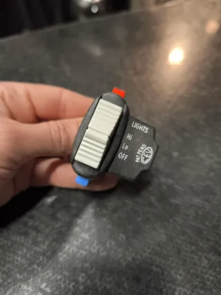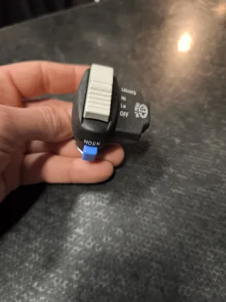 Llave de luces, interruptor conmutador clásicas, original de Rieju RV ,Drac ,Maarathon , Puch Cobra ,etc. Nuevo de antiguo Stock. Viene con tramo de cableado, para no tener que soldar y poder realizar tus pruebas de instalación - Posiciones: Hi (alta), Lo (baja) y Off (apagado). - Incluye indicador de PAT. PEND.