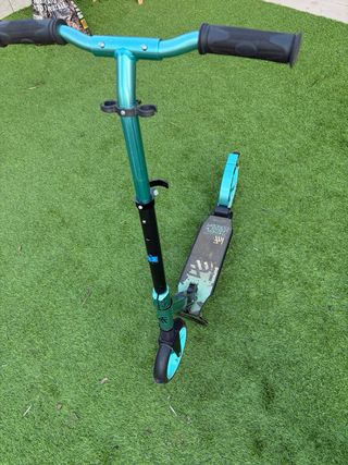 Patinete SCOOTER KRF PREMIER CITY 200 en color verde azulado. - Diseño urbano y moderno. - Ruedas de 200mm para un desplazamiento suave. - Manillar ajustable en altura. - Freno trasero.