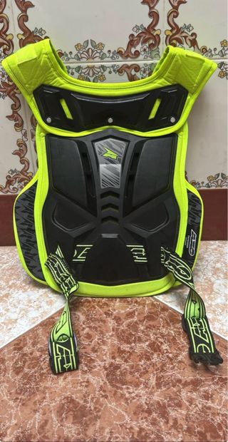 Peto protector para motocross de la marca AXO en color neón protect usado una sola vez, talla L/XL - Diseño con protecciones rígidas. - Cierre con correas ajustables. - Tejido acolchado para mayor comodidad.
