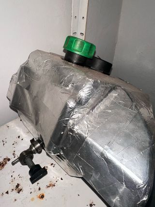 Depósito de combustible para Jog. - Cubierto con material aislante plateado para que refrigere mejor la gasolina y salga fria - Incluye tapón verde y negro y llave y filtro para abrir la gasolina