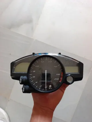 Marcador de relojes cuentakilómetros para Yamaha R6 de los años 2006-2007. Tiene entre 30 y 33.000 no creo que llegue . No lo recuerdo exactamente, se quito funcionado de un despiece, y lleva años guardado en un cajón. Está perfecto solo tiene uno pequeños arañones y le falta un aro plata que solo es un embellecedor nada más. Se puede ver en las fotos. - Tacómetro con escala hasta 20 x 1000 r/min. - Pantalla digital para información adicional. - Botones SELECT y RESET integrados.