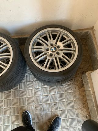 Juego de llantas réplica estilo M3 E46. Buen estado general puedo pasar mas fotos por privado. Las gomas están para cambiar seguramente.