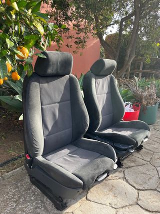 Se venden asientos M Sport de BMW E39, adaptados con bases de BMW E34. Ideales para un proyecto de personalización. - Tapicería de tela oscura. - Reposacabezas integrados. - Bases de montaje incluidas. NEGOCIABLE