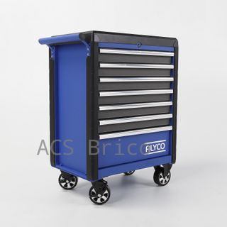 CARRO METALICO DE 7 CAJONES ANTIVUELCO ALYCO 129725 DESCRIPCION: Robusto y resistente a los golpes. Carro de estructura reforzada, con largueros y protecciones anti golpe en las esquinas. Gran capacidad y peso soportable. Alta capacidad de carga (total 300 kg., cajones pequeños 20 kg., cajones grandes 30 kg.). Gran maniobrabilidad con poco esfuerzo. Posibilidad de desplazamientos seguros y cómodos, y de bloqueo del carro con frenos en dos de las ruedas. Ordenamiento de las herramientas por los diferentes cajones y la posibilidad de colocar módulos con herramientas Alyco. Seguridad ante robos o pérdidas por la cerradura centraliza...
