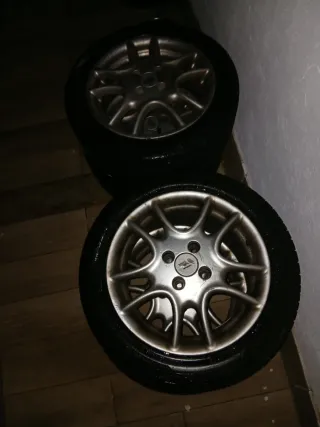 Se venden 4 llantas. En el precio se incluye una rueda de repuesto de chapa, dibujo de la rueda en la ultima foto n°4, de la misma medida que las otras gomas Las medidas de las gomas son: 195/50/15. Tienen 2 gomas nuevas ( hankook ventus prime3) aporto factura en las fotos. Y tiene otras 2 para cambiar. Se pueden añadir 2 separadores (BTR) de 1.7mm con la tornilleria por 50€ mas, aporto factura en las fotos tambien. Mas informacion o fotos no duden en contactar por mensaje. Solo venta y en persona no hago envios. Se encuentran en Padron.