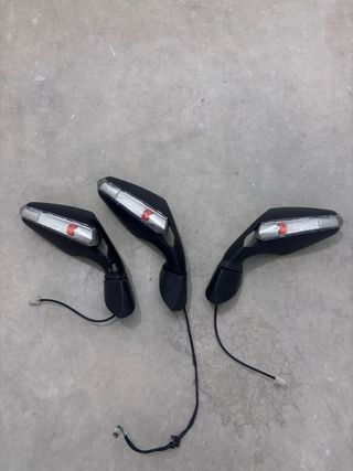Lote de tres retrovisores de derbi gpr 125/50cc. -dificiles de encontrar ahora mismo -dos retrovisores derechos y un retrovisor izquierdo -uno de los derechos esta un poco roto y no se puede doblar para guardarlo pero no afecta, los otros dos estan en perfecto estado -son originales - Diseño deportivo. - Carcasa negra. - Cableado para conexión.