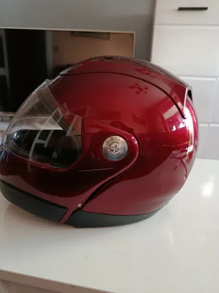 Casco de moto de la marca Mitaka en talla L. Su diseño es elegante y deportivo. - Color rojo brillante. - Visera transparente. - Interior cómodo.