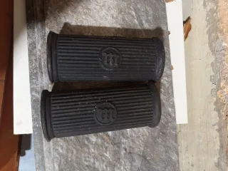 Par de reposapiés para moto Bultaco.Nuevos Están fabricados en goma negra con un diseño estriado para un mejor agarre. - Incluye dos unidades. - Goma negra. - Diseño estriado.