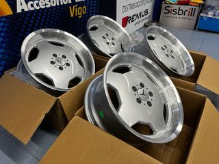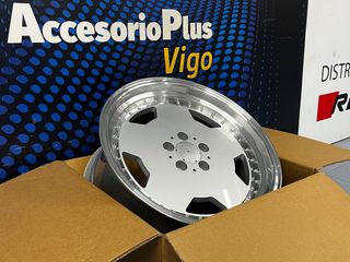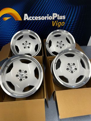 Juego de 4 llantas clásicas de 18 pulgadas para Mercedes, en doble medida. Look performa 25 8+9x18 - Diseño deportivo y elegante. - Acabado plateado pulido. - Ideales para modelos clásicos de Mercedes.