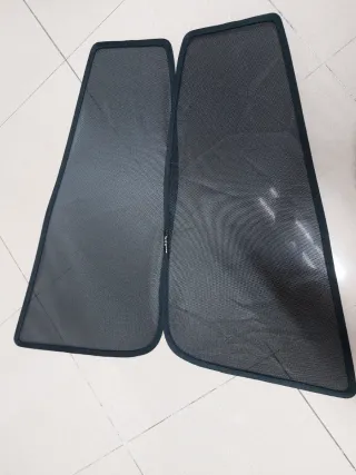 Parasoles para las ventanas traseras de un Alfa Romeo Giulietta. Son de color negro y están hechos de malla. - Diseñados para el Alfa Romeo Giulietta. - Color negro. - Material de malla.
