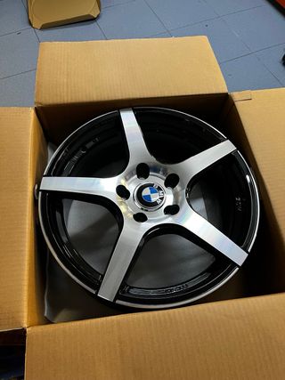 Juego de llantas de 17 pulgadas con anclaje 5x120, compatibles con BMW y con un ET38. nuevas a estrenar con factura garantia Envio a toda españa - Diseño deportivo en negro y plata. - Centro con logo BMW.