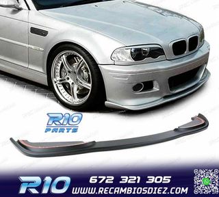 Móvil: 672 321 305 - Referencia: RLC151531. LIP SPOILER FRONTAL BMW E46 M3 98-05 Válido para: BMW Serie 3 E46 (1998-2005) Coupé / Cabrio / Sedán / Touring Solo para modelos con paragolpes look M3 Especificaciones: Imprimado: Listo para pintar Material: Plástico ABS Montaje. Instalación sencilla, directamente en los anclajes originales del vehículo. ABS. Fabricado en plástico de alta calidad para asegurar resistencia y larga durabilidad. Imagen. Rejuvenece la apariencia del vehículo con este spoiler deportivo. Estos no son productos originales de la marca BMW. El artículo ofre