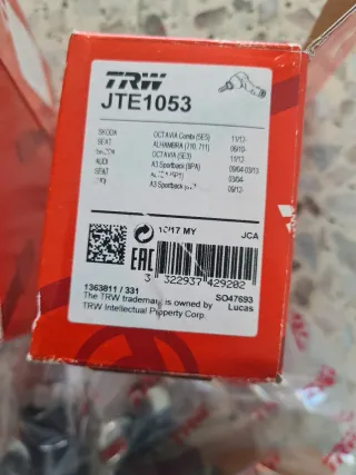 Rótula de dirección TRW JTE1052. - Compatible con Skoda Octavia Combi (5E5) desde 11/12. - Compatible con Seat Alhambra (710, 711) desde 06/10. - Compatible con Skoda Octavia (5E3) desde 11/12. - Compatible con Audi A3 Sportback (8PA) desde 09/04-03/13. - Compatible con Seat Altea (5P1) desde 03/04. - Compatible con Audi A3 Sportback (8VA...) desde 09/12. - Número de pieza: JTE1052. - Código adicional: SO47741 Lucas.