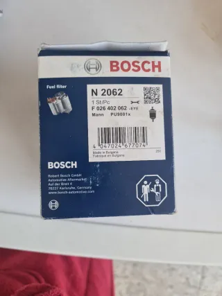 Filtro de combustible Bosch N 2062. - Número de pieza: N 2062 - Marca: Bosch - Tipo: Filtro de combustible - Incluye: 1 unidad