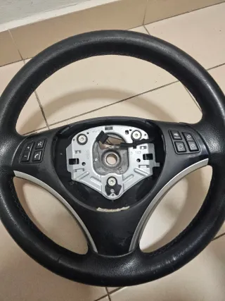 Volante de cuero para BMW. - Diseño deportivo. - Acabado en cuero negro. - Detalles plateados.